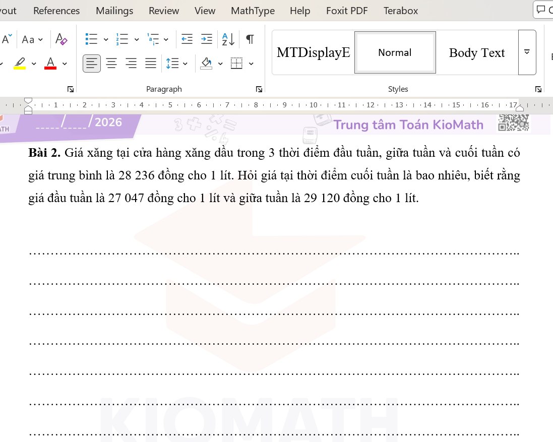 Từ số liệu giá xăng thực tế, Thầy Kio đã biến thành một bài toán nhỏ để các con cùng luyện tập và suy nghĩ.