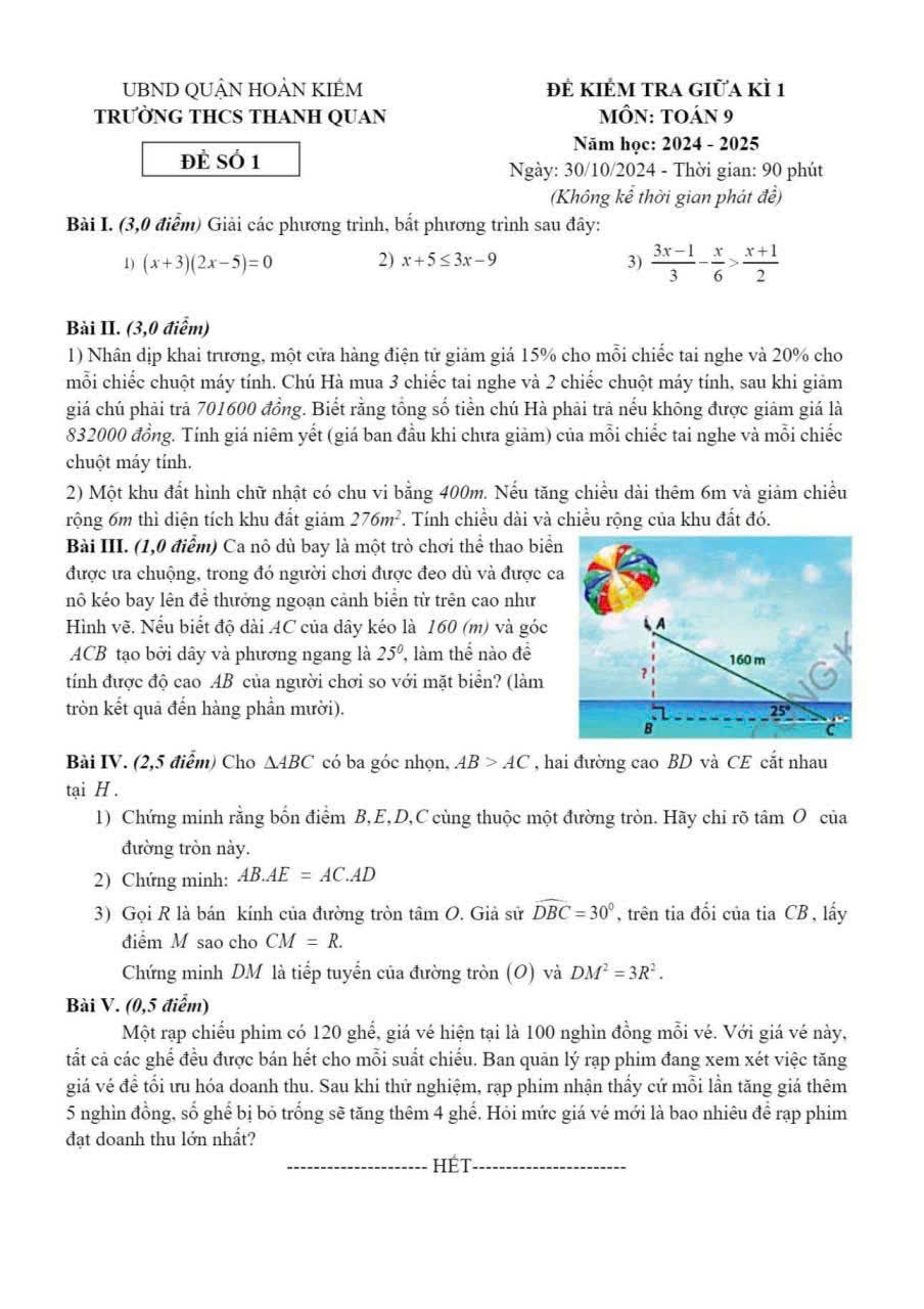 Đề khảo sát chất lượng đầu năm trường THCS Thanh Quan: