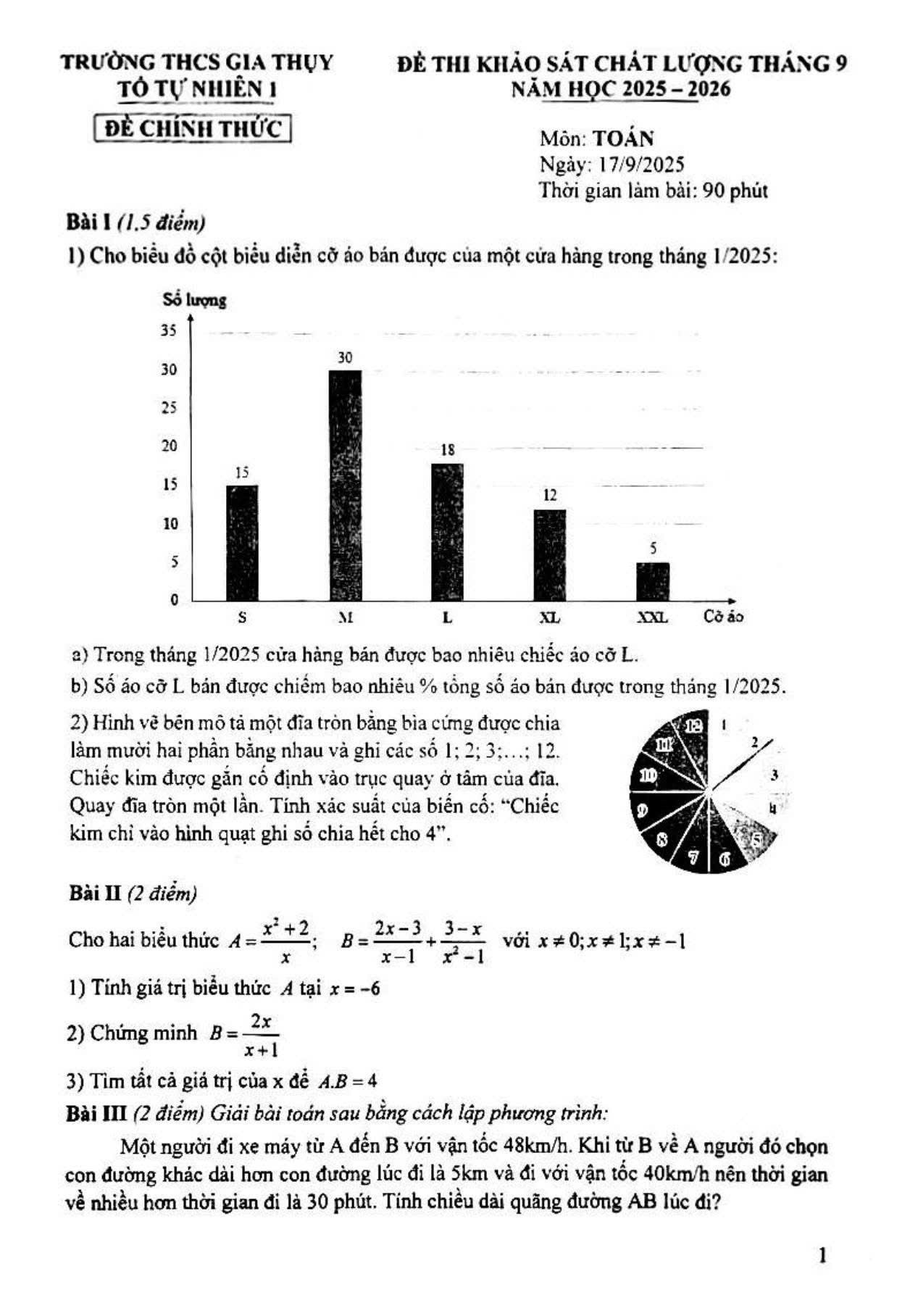 Đề khảo sát chất lượng đầu năm trường THCS Gia Thụy:
