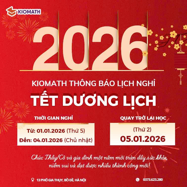 Trong không khí hân hoan chào đón năm mới, KioMath xin trân trọng thông báo lịch nghỉ Tết Dương Lịch 2026 để mọi người chủ động sắp xếp kế hoạch cá nhân: