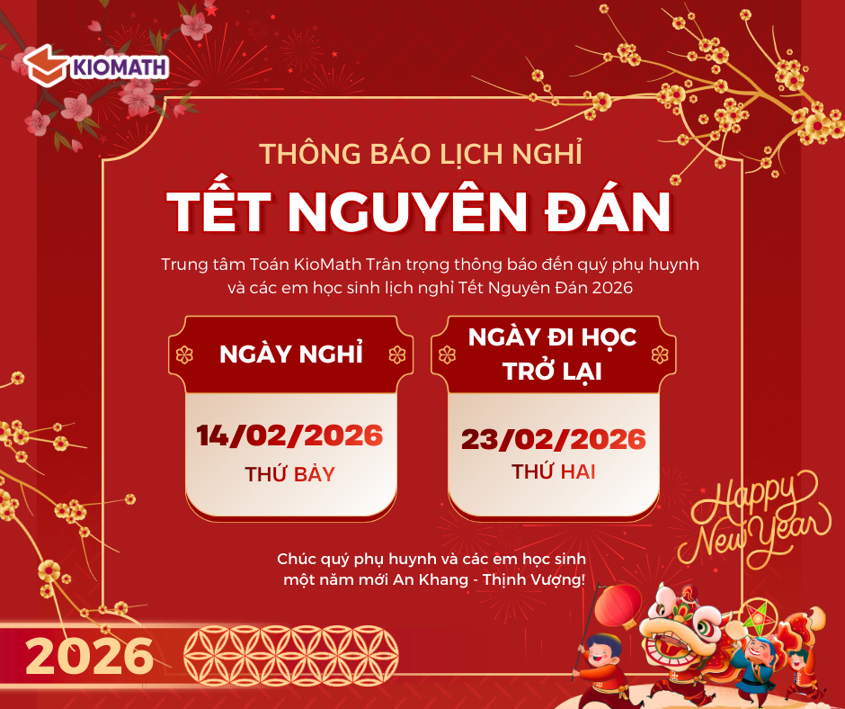 Trung tâm Toán KioMath xin trân trọng thông báo lịch nghỉ Tết Nguyên Đán 2026 như sau:
