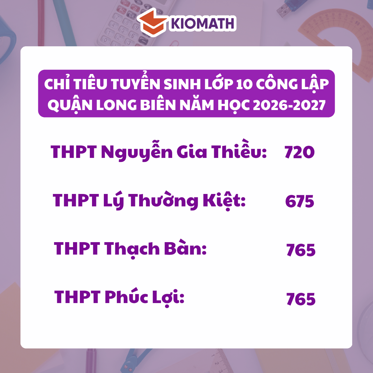 Thông tin mới nhất về chỉ tiêu tuyển sinh lớp 10 công lập quận Long Biên năm nay!