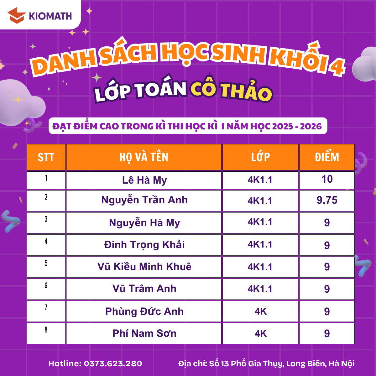KioMath chúc mừng các em và tin rằng với nền tảng này, các em sẽ tiếp tục bứt phá trong học kỳ II