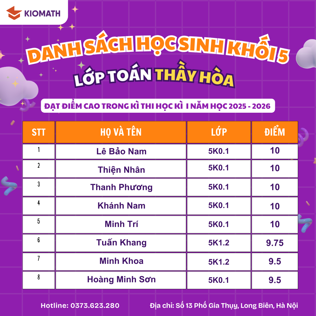 Kỳ thi cuối học kỳ I đã khép lại, ghi dấu chặng đường học tập đầy nỗ lực của các bạn học sinh các khối tại KioMath.